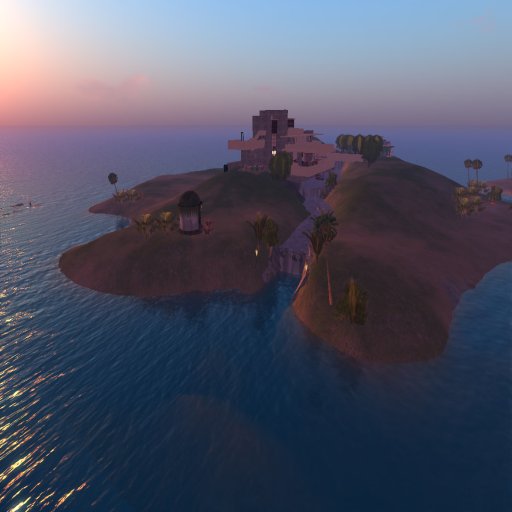 It’s been a fun week since then, taking a raw sim and molding it into a private estate for both ourselves and our closest friends. Fallingwater, our house, now has a “home” to suit it – even though it is far removed from the land surrounding the real place; and we’ve been able to provide friends with houses that draw inspiration from Frank Lloyd Wright’s designs.