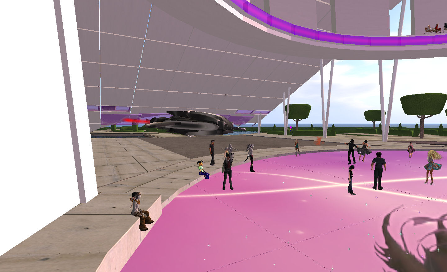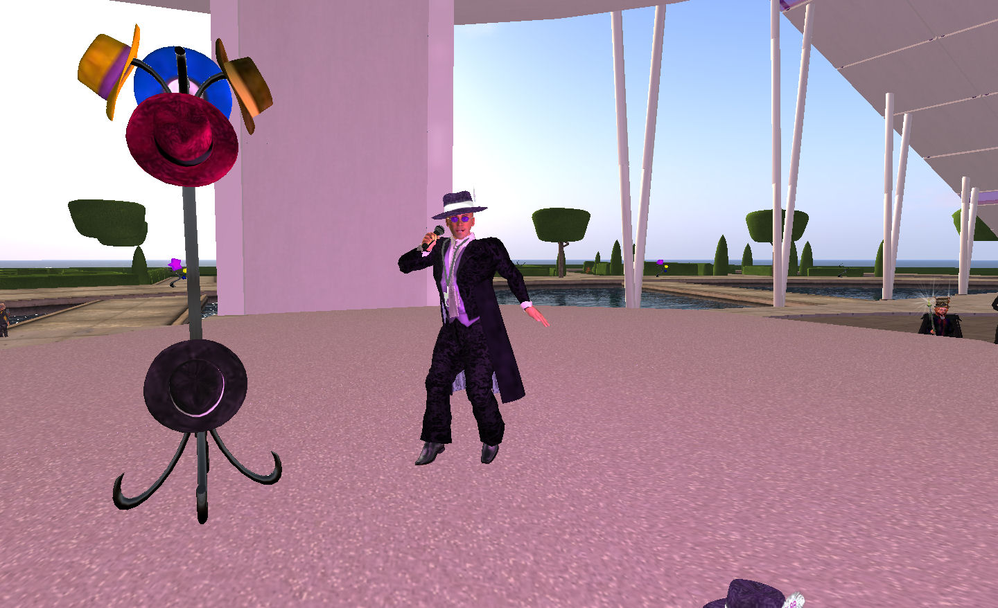 Yes, Rodvik arrived wearing a spiffy spaceship avatar, which I managed to catch as he headed towards the Main Stage as FedoraJones was starting on his set. Arriving stage-side, Rodvik commented wryly, “Heh, I should probably ghave changed av’s,” to me as he proceeded to fly around the stage auditorium, mingling with the crowd.