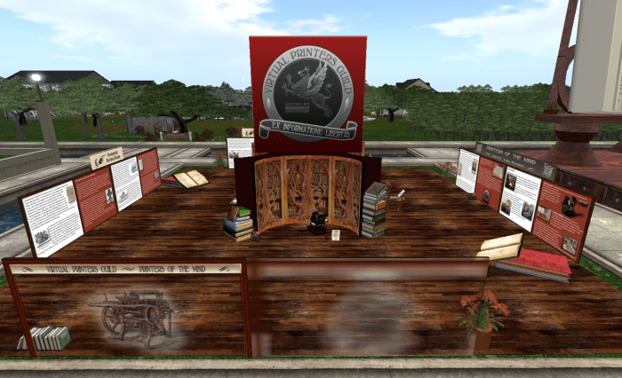 The Printers of the Mind celebrates the 450-year history of the art of printing and its rebirth in Second Life through the recreation of the printing presses and printing technology of the past. Learn about the history and art of printing, and to view the presses that brought literacy, information, literature and, perhaps, even freedom to the world.