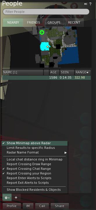 Aswith the Preview, Radar forms a part of the PEOPLE tab on the Sidebar – but is much improved. For a start there is an optional minimap display; you can also adjust the scan range for the radar and alter the way avatar and adisplay names are displayed.