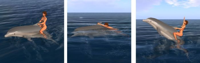 “Avi imagined the dolphins becoming much more real and swimming freely in the oceans of SL,” Crissi interjected with a smile, “So she set herself the goal of scripting, and SL began to work its magic!”