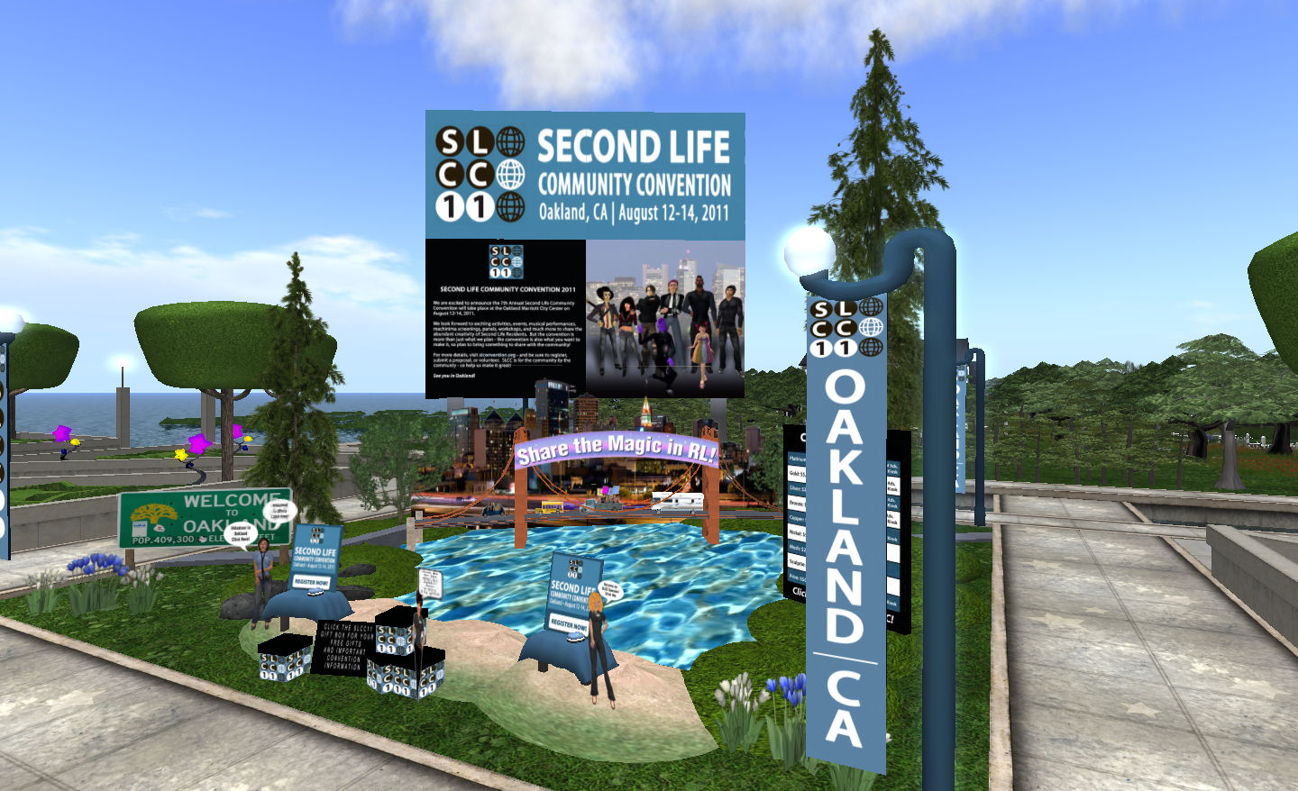 Of course these is a fine line between advertising and promotion – and there are exhibits at SL8B that are openly and rightly about promotion. One of these is SLCC 2011, which is represented at SL8B, with some decent information on the event itself as well as a call for sponsors – although I’d personally be looking for local companies in the Oakland area to take up that particular challenge.