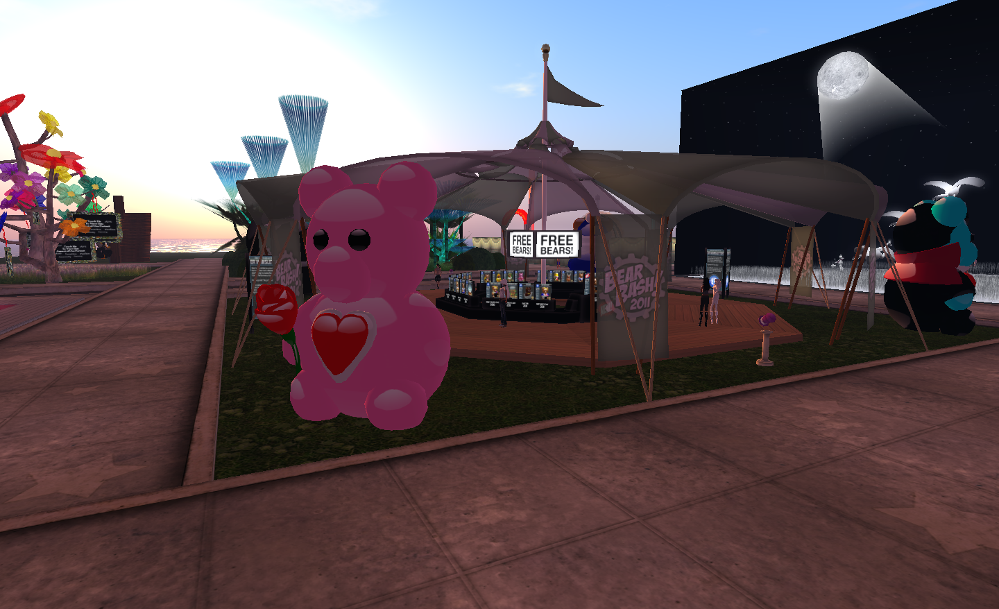 I had a little wander around before things got too laggy, looking for familiar faces. I spied Anne Otoole from a distance and a few names from the SLPC. Lexie Linden was also there from the Lab. The last time I’d seen her was Saturday, during my tour of the sims, when I helped her track down an illusive Linden Squire Bear who had naughtily set himself for sale at L$10, rather than L$0.