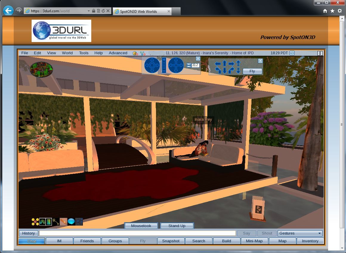 - Objects: displays a list of objects surrounding your avatar (may need to use the Refresh button to get the list to display), together with buttons to Sit on a selected object (left-click to select the object from the list), and your avatar’s status will change to SITTING at the bottom of the Libretto window while the SIT button will change to STAND; and a button to Touch a selected object