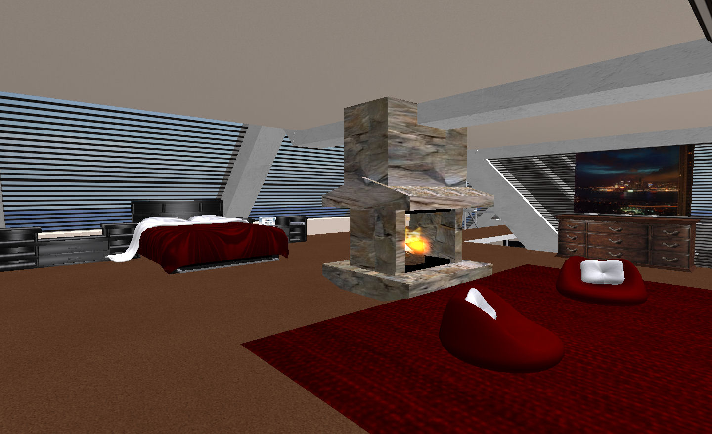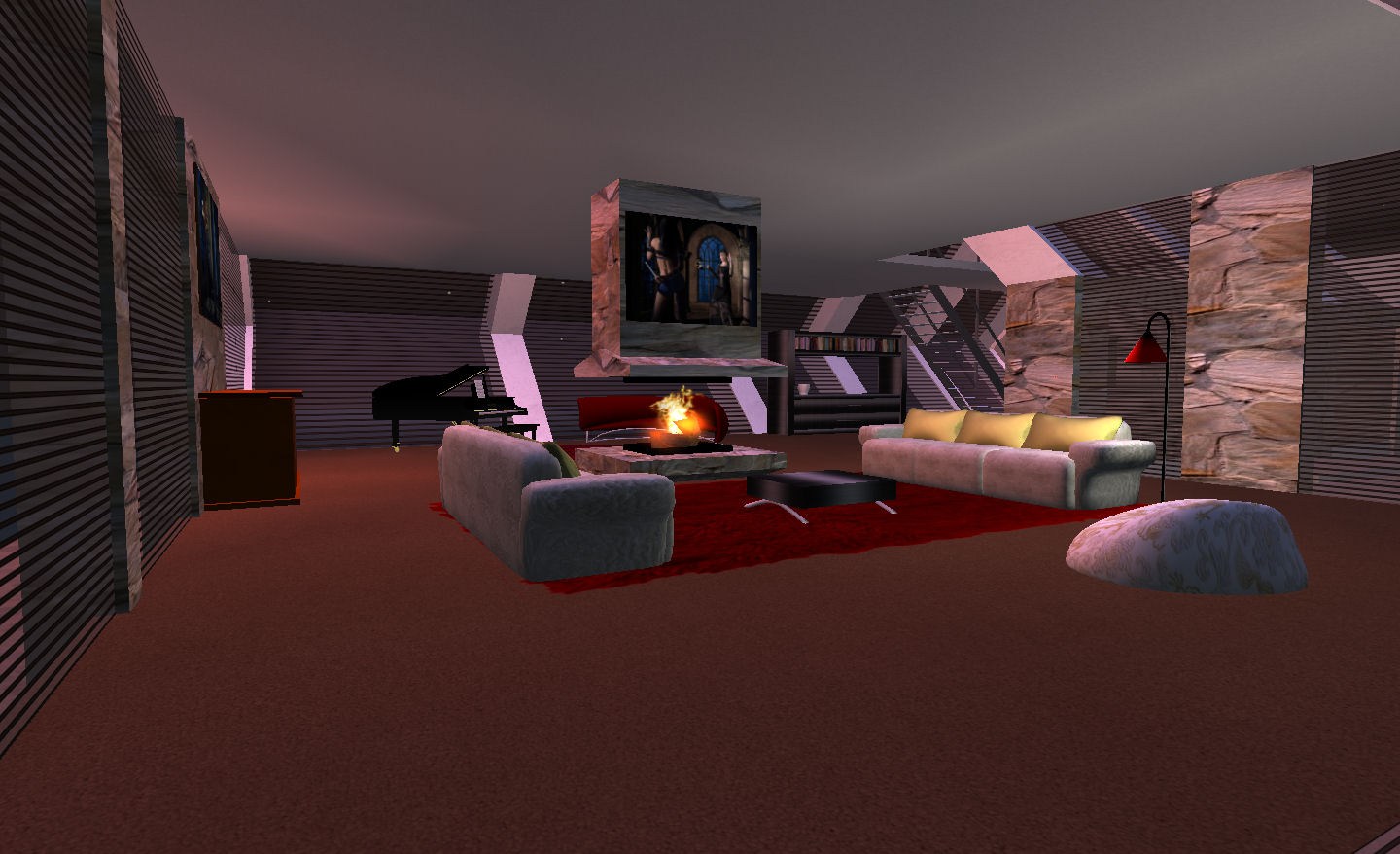 As per usual, I’ve opted for scripted lights (‘cos I’m lousy with textures), and as the photo shows, have hopefully got something warm and inviting in terms of tone around the fireplace and the indirect lighting.