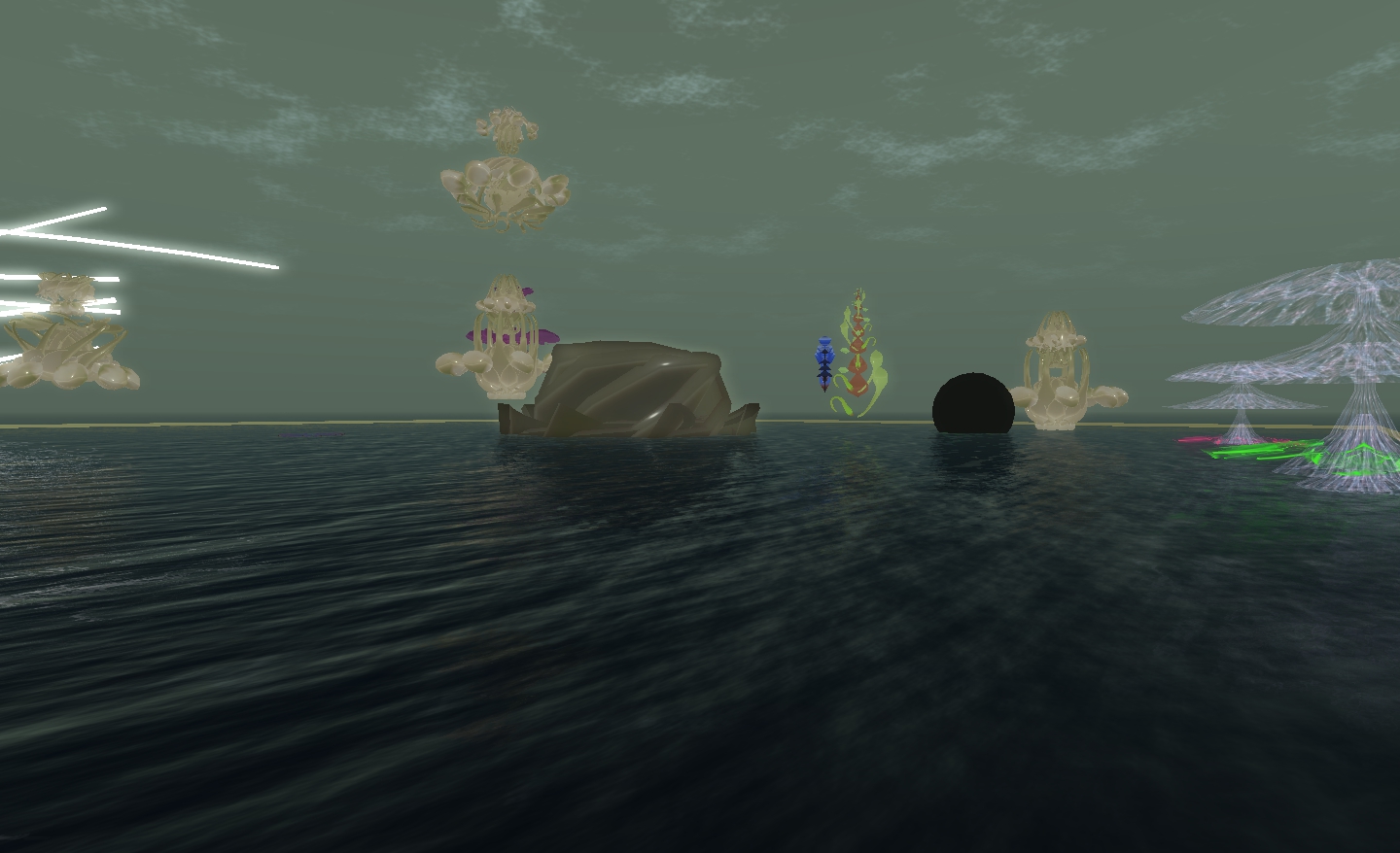 There will also be an interactive environment for audience participation, and interactive mixed reality cross-cultural performances by: Butler2 Evelyn / Senses Places. The sim will also include Mesh by Sage Duncan, Machinima Mutoscope Viewers by FreeWee Ling, Twitter Garden by Frans Charming, and the Inner Tube Ride of Your Life by UzzU Artful.