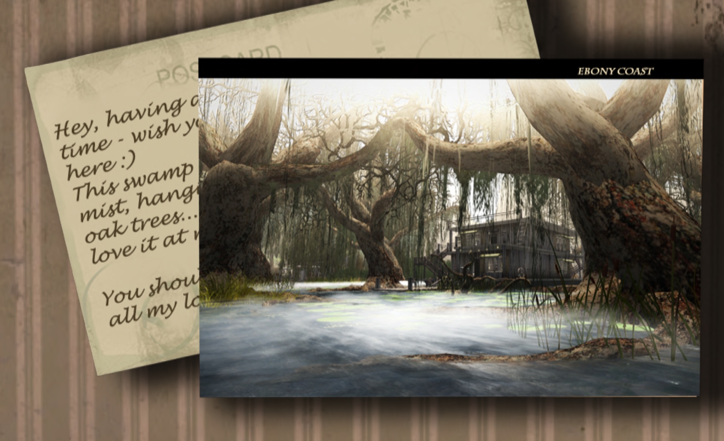 It’s a clever approach; the images themselves can be evocative – there is one of AM Radio’s work which causes a slight pang given his sims are now sadly gone from SL. The partially viewed messages from the “backs”of the postcards give each one added depth, as we catch a small glimpse into the life and thoughts of the person who sent the cards.