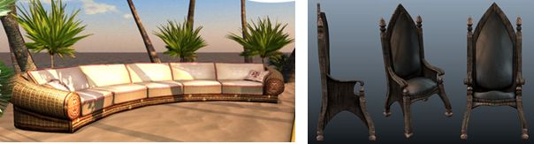 Elsewhere, mesh clearly does bring with it benefits that are obvious to grasp. Furniture is one such area, where prim counts can easily equal or better than prim or prim/sculptie equivalents and give a greater level of detail, even allowing for the complexities of including scripts and animations – as the two examples below pulled from the Marketplace demonstrate.