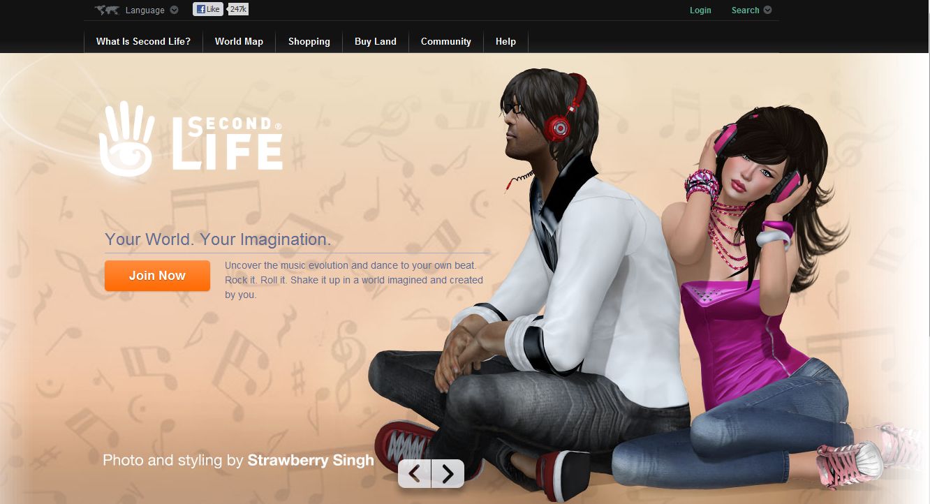 Now LL have gone the extra mile and not only engaged with some of best photographers and artists in SL to produce some really outstanding images for the log-in screen, they would appear to have started working on a theme-based approach to advertising SL through the splash page – the current theme being music. I caught sight of the new pages while browsing Strawberry Singh’s blog, but got sidetracked away from the new art by things like Havok sub-licencing and Marketplace updates, which became the focus of recent blog posts.