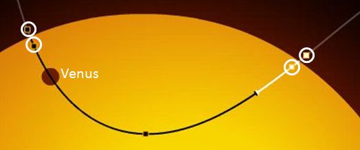 Transits of Venus across the disk of the Sun are among the rarest of planetary alignments. Only seven have occurred since the invention of the telescope (1631, 1639, 1761, 1769, 1874, 1882 and 2004). Such transits are only possible during early December and early June when Venus’s orbital nodes pass across the Sun, and have a pattern of recurrence at intervals of 8 and 121.5 years, then 8 and 105.5 years. This means that the next close pairing of transits will occur over a century from now in December 2117 (105 years from this year’s transit) and December 2125.