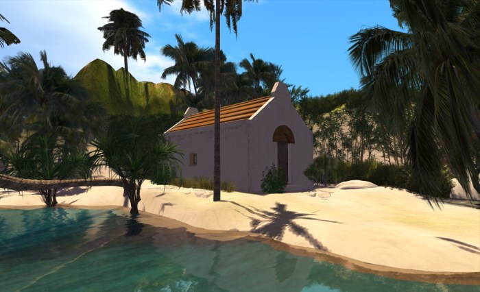 Skate and I finished our walk back at the cafe area, where we were joined by a parakeet while we talked about Matanzas’ development – Skate is constantly seeking ways to tweak and enhance the island as both the cafe itself and the chapel show – and Second Life in general. As we do, and as I take the opportunity to snap some more shots of the island, I’m struck by the one word that sums up Matanzas perfectly.