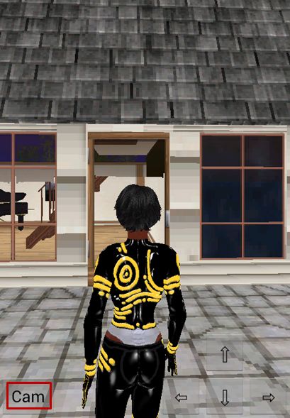 When tapped, the button caption changes to WALK, indicating that the next time you tap it, it will toggle back to WALK mode, allowing you to move your avatar, and the camera will snap back to the default rear view.