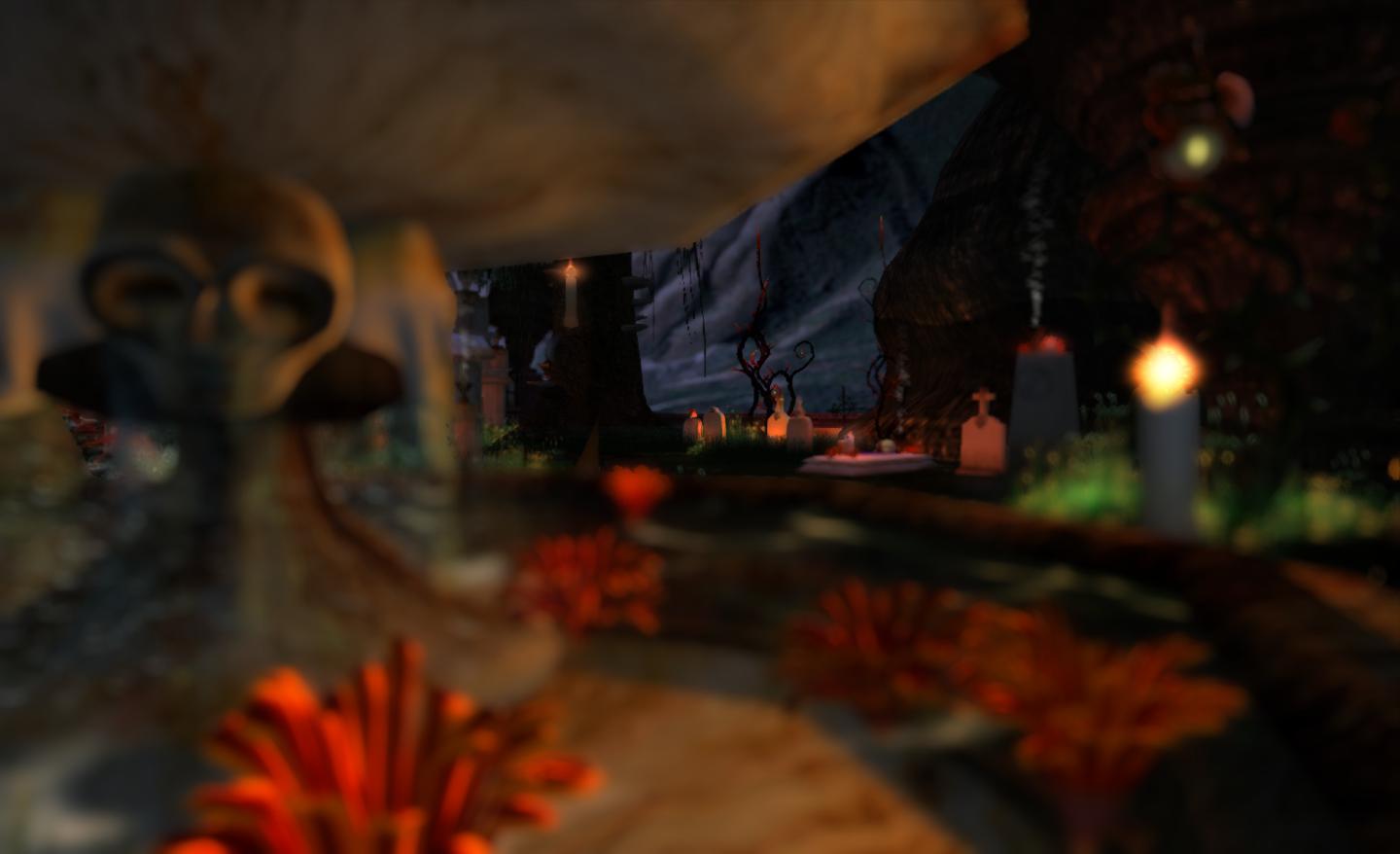 Calvera! is located high over Cerridwen’s Cauldron, and brings the famous celebration marked throughout Mexico and in other cultures around the world to life in Second Life for its third year under Elicio’s skilled hands. It’s a small installation, but one which, as with all of Elicio’s work, has been finely crafted by a master of the visual feast.