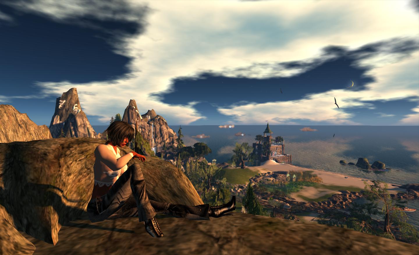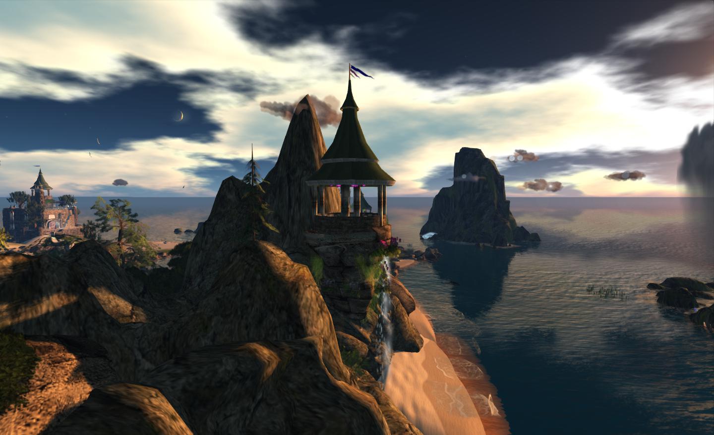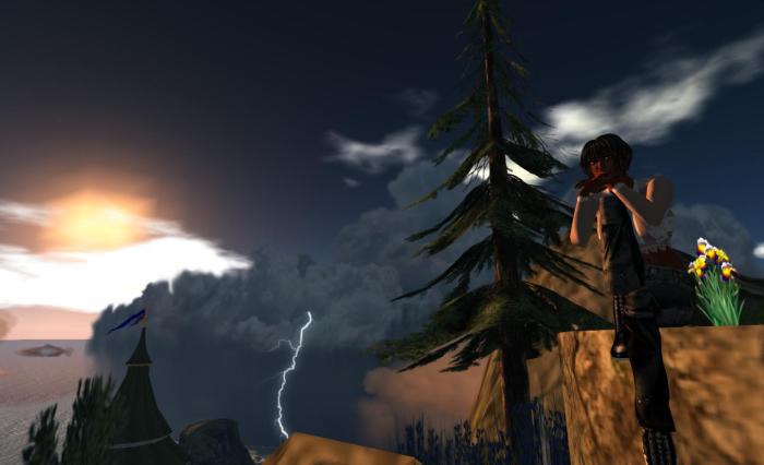 When it comes to thoughts about Second Life, the island might be seen as something of a metaphor when it comes to the bleaker outlook some ascribe to SL’s future (and which I do sometimes feel myself). On the one hand, we have the wonderful build of the island itself, yet looming on the horizon are roiling storm cloud split by lightning, almost personifying the issues SL does face is terms of falling region numbers, high tier, retention issues, all of which present a potentially stormy future for the platform.