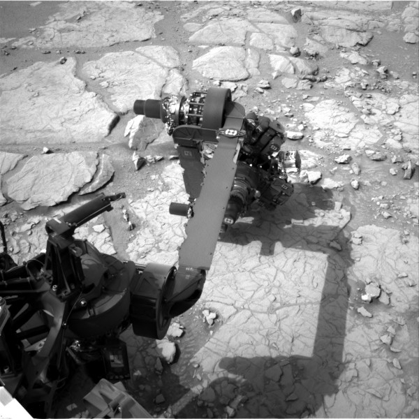 A prime mission goal for Curiosity’s explorations of Yellowknife Bay is the identification of a suitable candidate for the first use of the percussive drill – the last major item of equipment on the rover’s robot arm turret to be commissioned. As such, the rock surveys were part of this work.