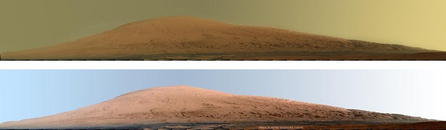 In the MSL reports presented in this blog, many images have been annotated as being “white balanced” for lighting, the idea being that the images have been filtered via computer so that they would appear as if seen by the human eye under normal Earth daylight lighting conditions. The technique is used because it helps make features easier to identify, and so assists in making decisions on operating the rover, such as selecting preferred drive routes, identifying rock formations for detailed study, etc.
