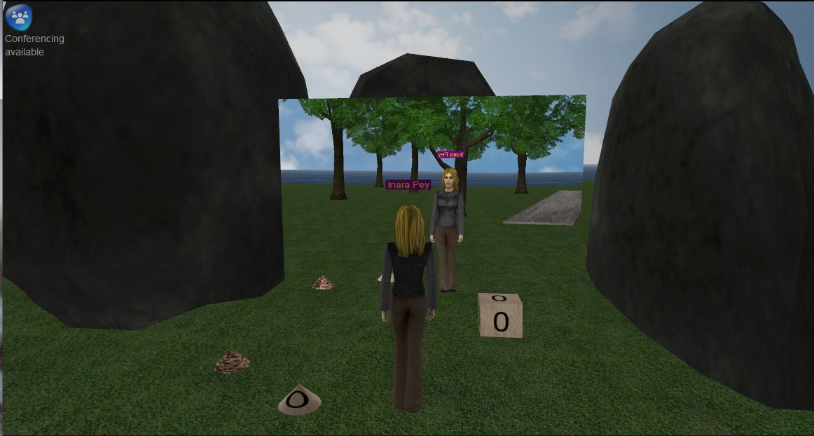 The option is currently being tested, and the Welcome Area has conferencing enabled. Clicking on the button opens a window which includes a an option to allow Pixieviewer to grab control of your microphone / camera, together with options for accessing camera and microphone set-up. There are also buttons to log-out of a conference and hide the conference window (handy if you are engaged in voice-only conferencing while doing things). It currently appears as if anyone clicking on the Audio / Video Conferencing button will join an existing conference.