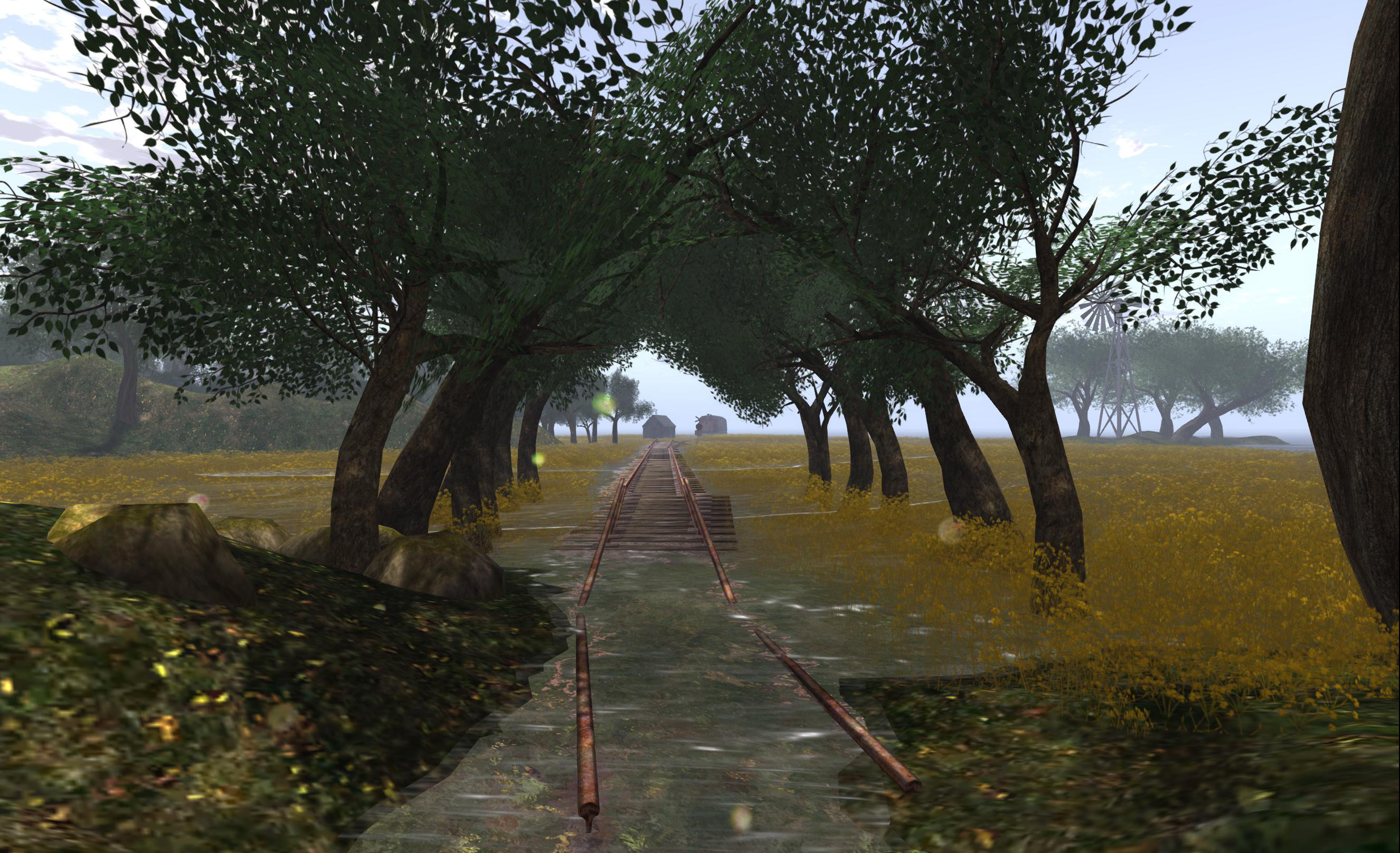 Well, now spring has arrived, and with it Cours has had something of a redesign which again demonstrates Vitamingirl’s creativity. The store now sits at the top of a hill and is reached by stone steps leading up from the arrival point. Heading off across a watery landscape is an old, broken railway track, inviting you to explore the region.