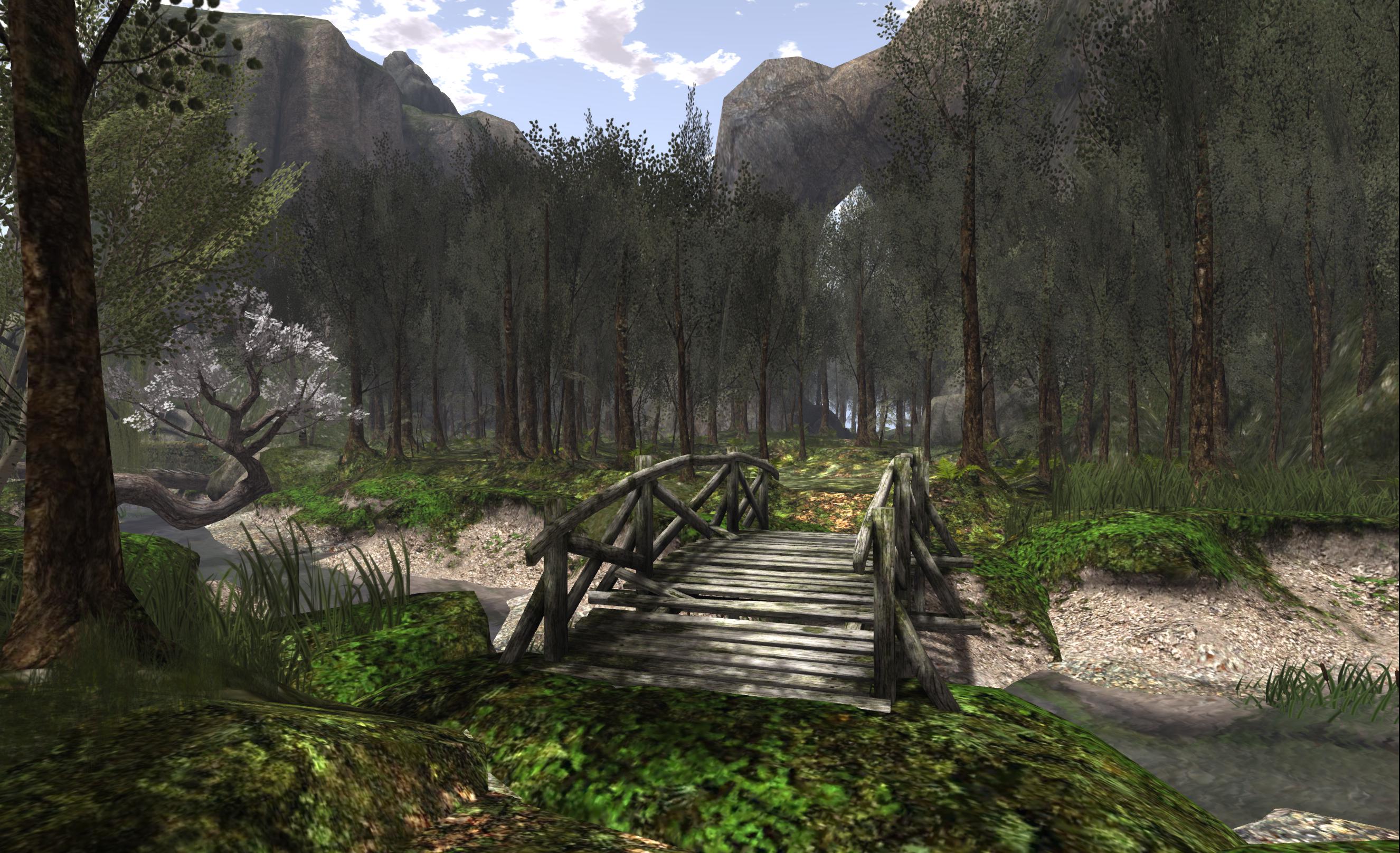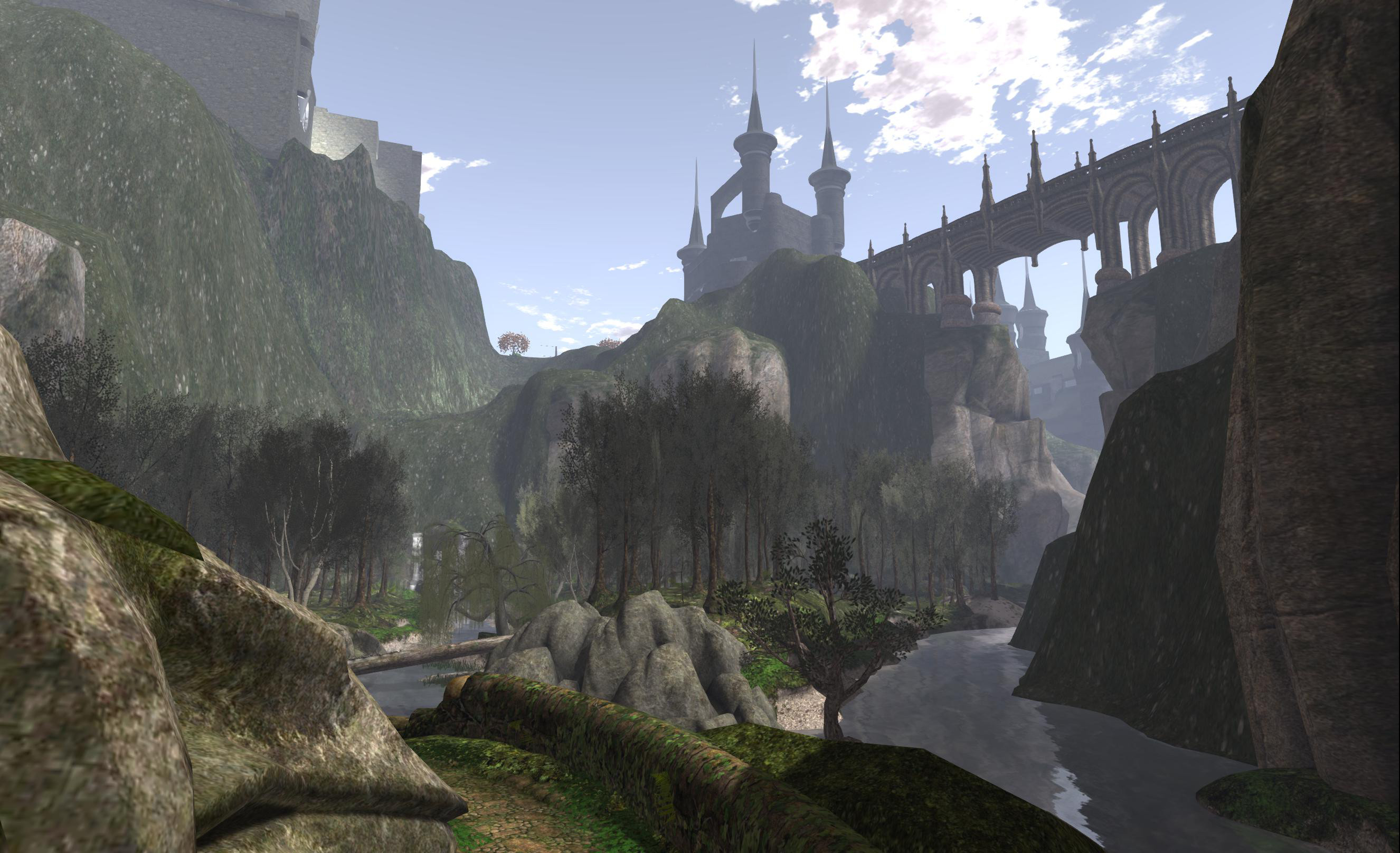 See the bridge? Does it seem familiar? Well, possibly because you’ve seen it here, or here, or here, to mention just three of its appearances in this blog. It is the work of Alex Bader and while he is probably best known for his stunning and evocative castles, is also perhaps deserving of the title, “landscaper to the sims” because the chances are than when you are visiting one of the many picturesque regions across Second Life, you’re going to be seeing / walking on / crossing / standing under one of his creations – and more than likely passing many of them.