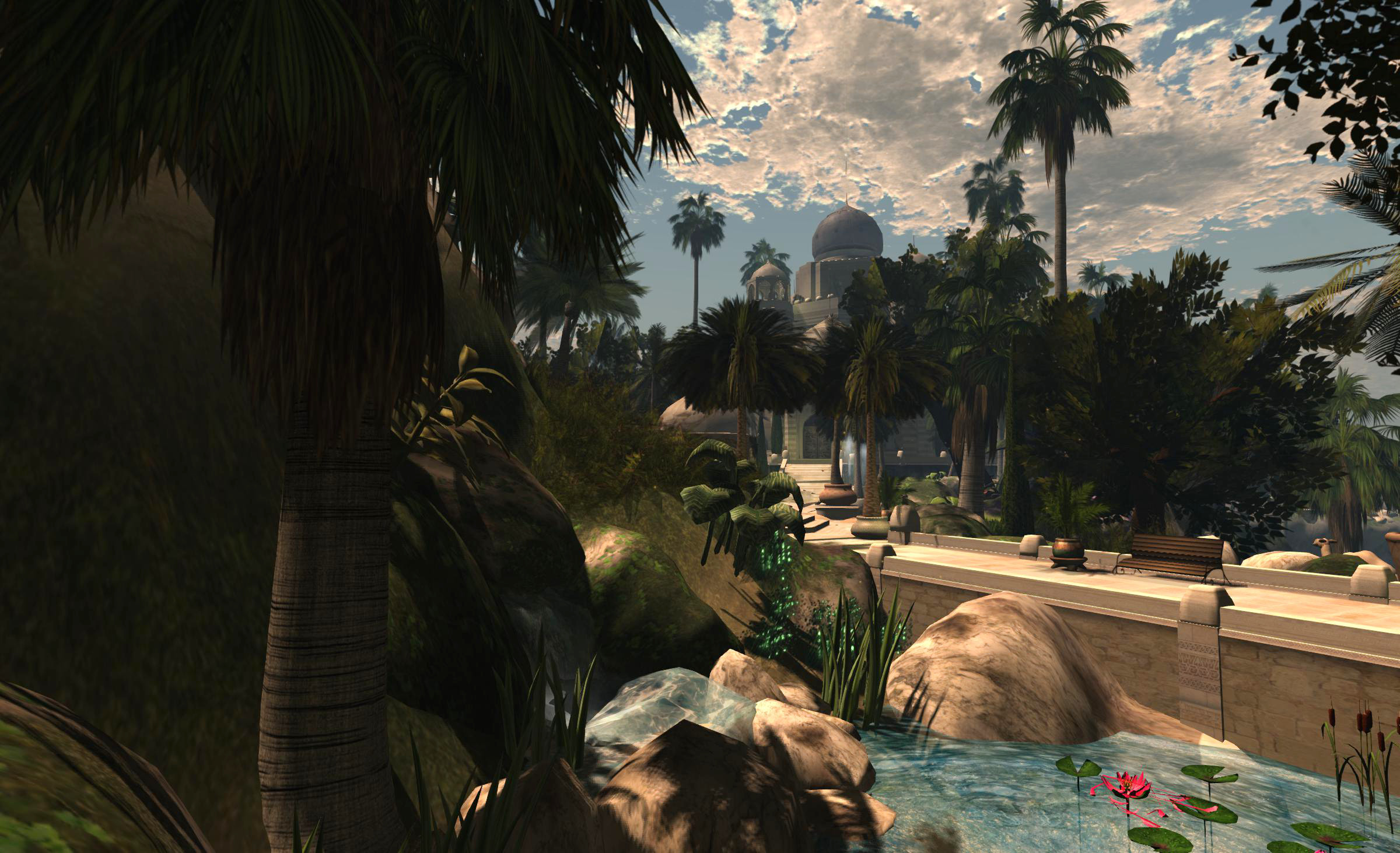 Nevertheless, exploring Sands of Time brought a smile to my lips; this is a beautifully composed region, which brings together a mix of eastern and western mythologies (the Djinn or Jinni (genies)) of the east, and the elves of the west) together in an incredibly scenic and restful sim which, Calein informs us through a visitor’s notecard, took a year to visualise.