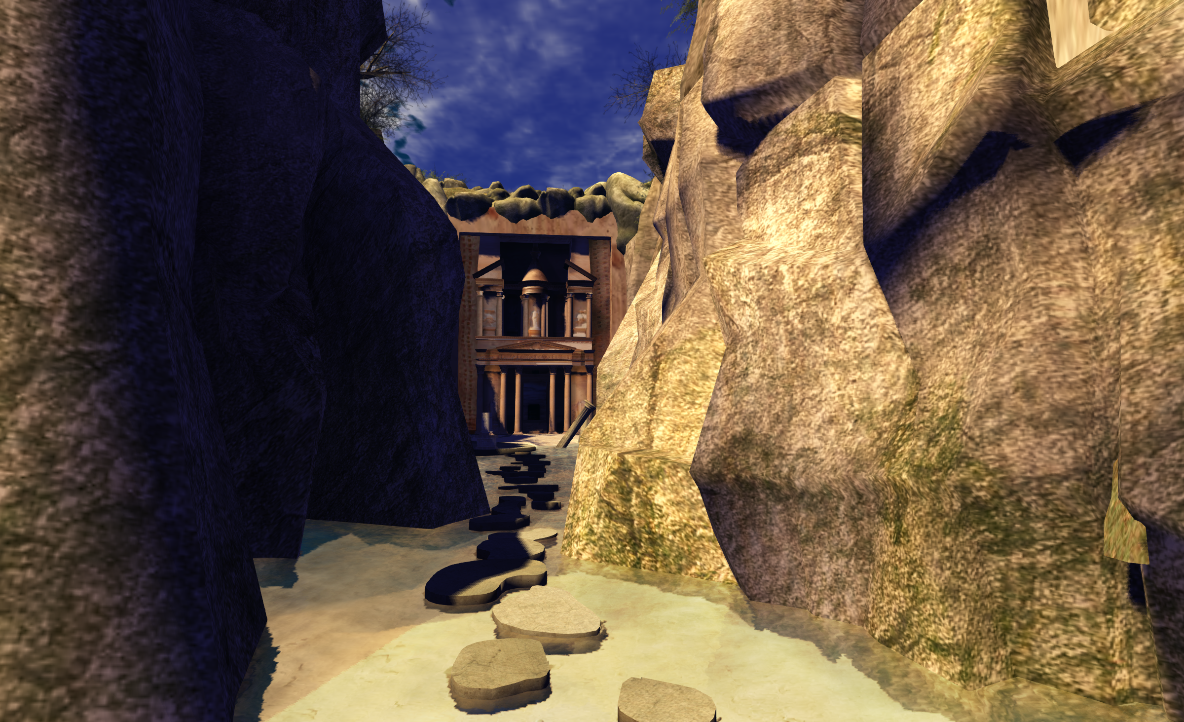 Catching a glimpse of The Treasury through the narrow ravine is a genuine “Oooo!” moment, and doubtless one which has / is / will be the subject of many SL snapshots…
