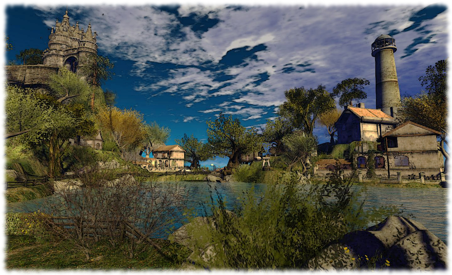 From the castle high on a rocky promontory, reached by a winding stone road, across to the tall, slender lighthouse and the stone-and-wood watchtower, the region is genuinely one of the “must see” places in SL.