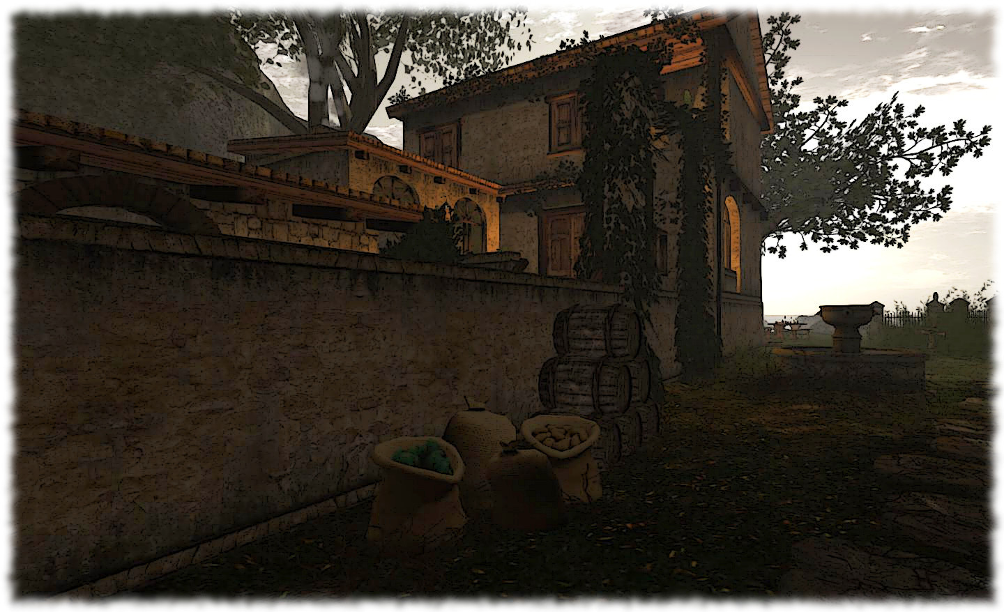 Between these landmarks are a number of farmhouses set amidst a carefully sculpted landscape which mixes fields, trees and water, complete with the traditional “vampirey” elements: an old church and a couple of cemeteries.