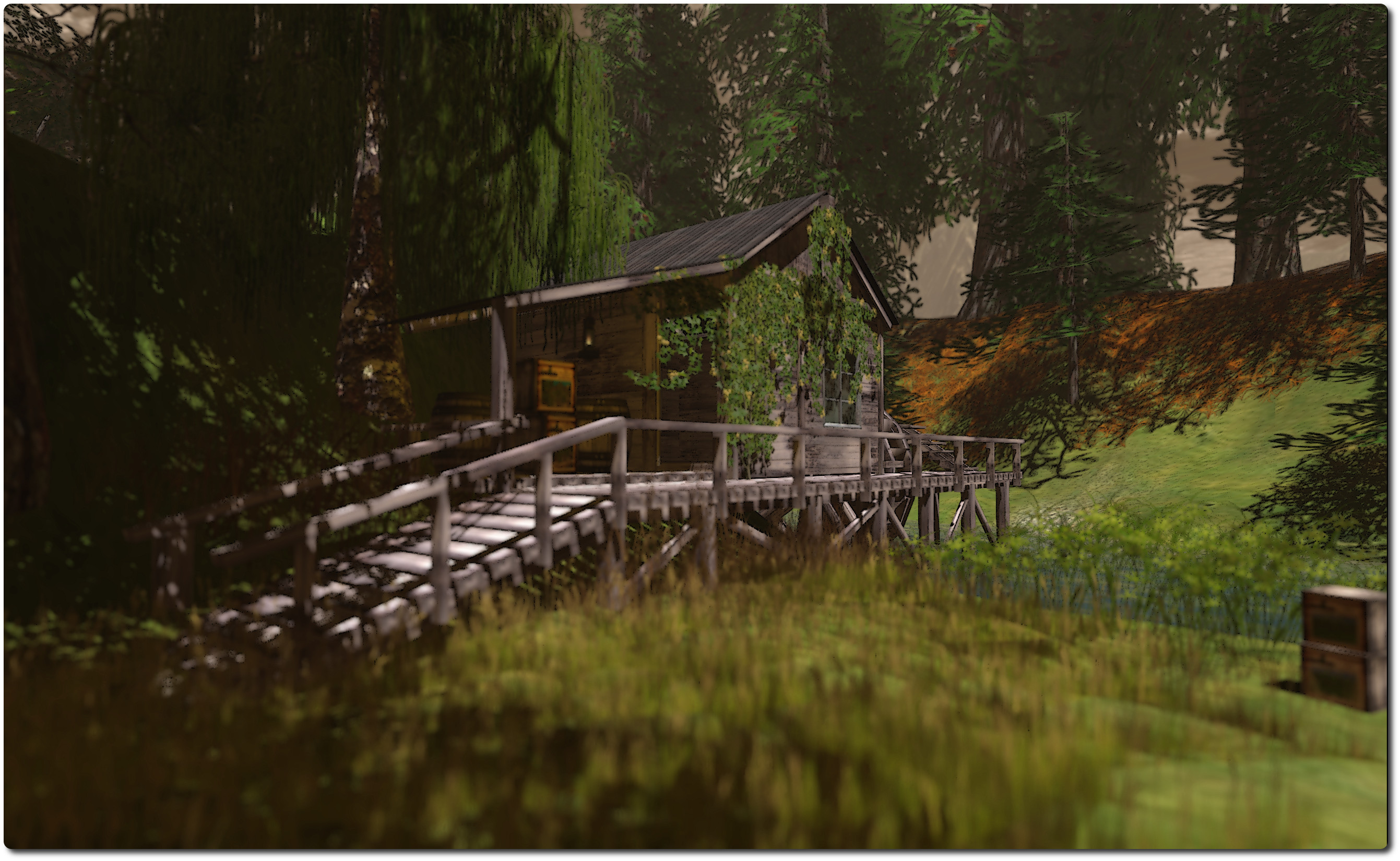 For the SL photographer, the region offer as many opportunities as The Untroubled Sound. Arty has supplied the region with a foggy default windlight, suggestive of an autumnal evening, but the region lends itself to a huge number of windlight options, while the sim surround positively invites tweaking the cloud coverage and planning with different windlight options to invoke different moods.
