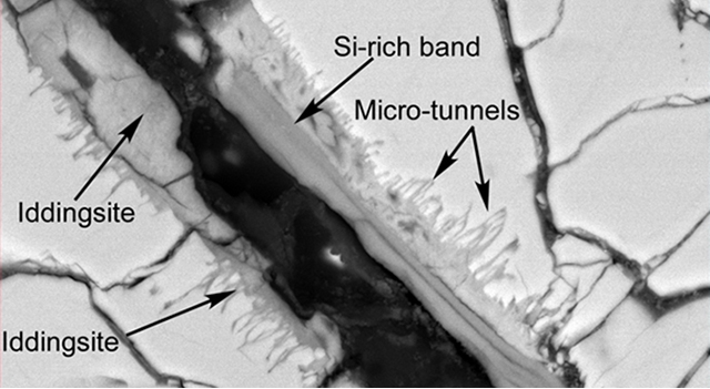 Studies of the rock have revealed distinctive tunnel and micro-tunnel structures threaded throughout Yamato 000593. These structures display curved, undulating shapes consistent with bio-alteration textures similar in kind to those reported by researchers who study interactions of bacteria with basaltic materials on Earth. Alongside of these, nanometre- to-micrometre-sized spherules have been observed sandwiched between layers within the rock and are distinct from carbonate and the underlying silicate layer.