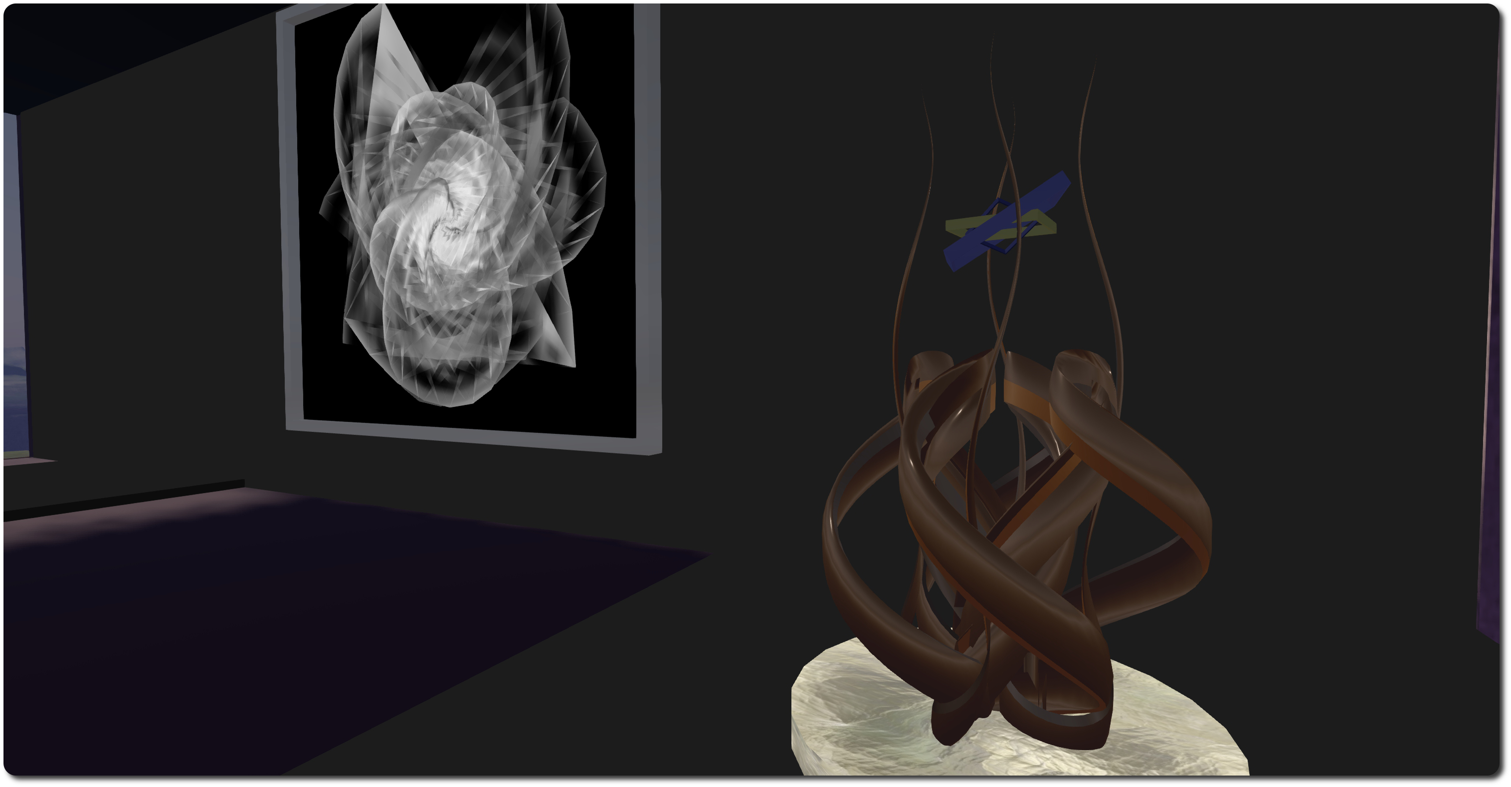 There are no descriptions accompanying the individual pieces – or at least, none I could find in clicking, but the names are evocative: “Exclusion”, “Web”, “Safety”, “Quest” and so on. Each piece is also somewhat hypnotic in its influence; or perhaps mesmerizing might be a better term, drawing the observer into them, encouraging close-in camming in order to watch the changing forms and patterns.