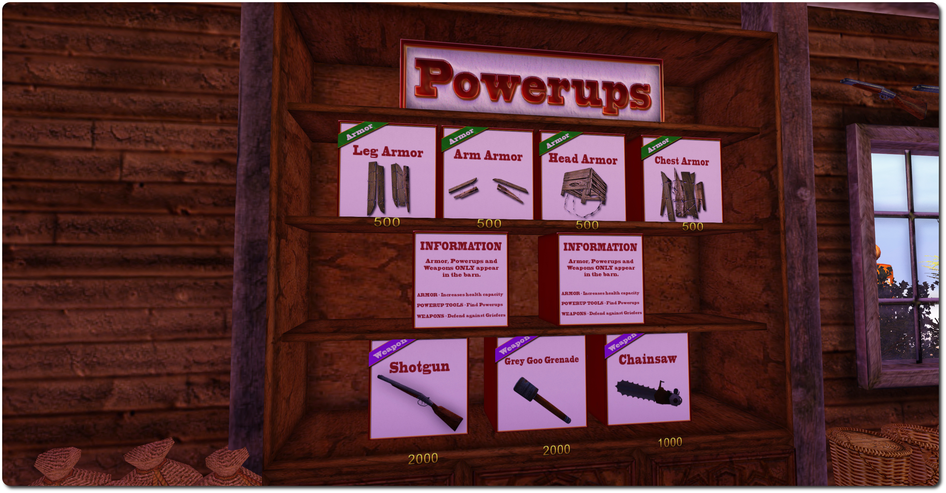 Corn bucks themselves can be used in the General Store (reached via a portal at the back of the barn), where you can buy additional armour to protect yourself from the marauding griefer monsters and arm yourself with better weapons for killing them.