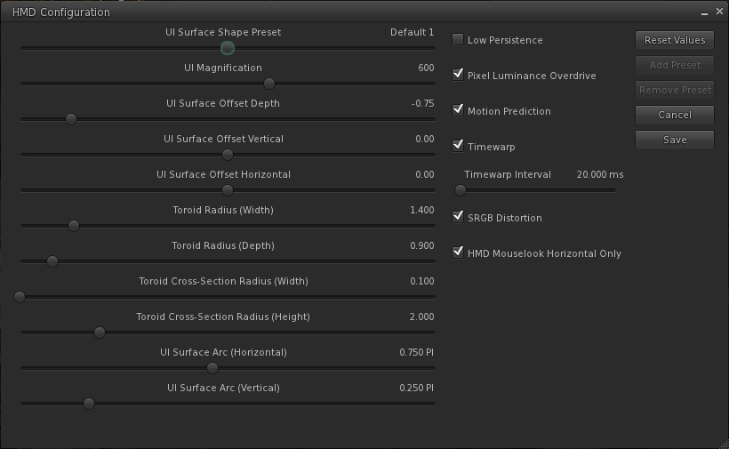 - On the HMD setting panel in preferences try experimenting with turning low persistence mode on and off. We’ve found that is some cases it can exacerbate ghosting and jitter.