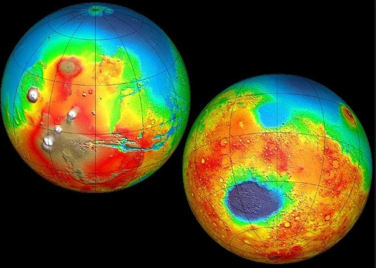 Take Hellas Basin, for example. It is the largest visible crater in the solar system, some 2,300km (1,440 miles) across, and with an ejecta ring some 7,000km (4,375 miles) across. It is believed to have been created by the impact of an asteroid some 400km (250 miles) in diameter.