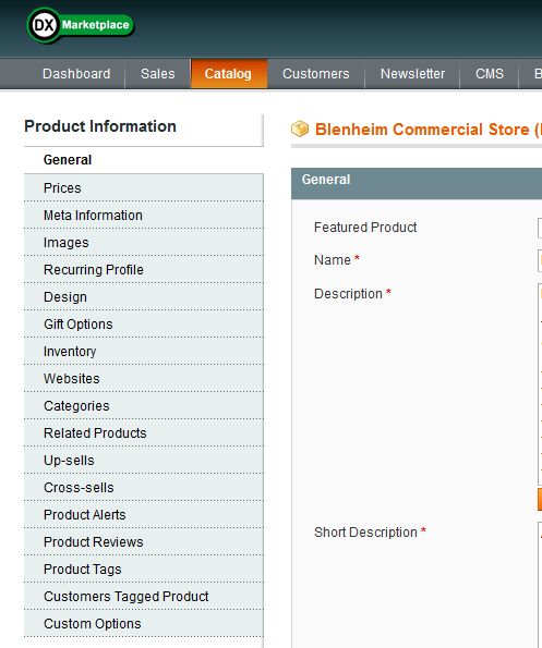 Elsewhere in the Admin page menus (such as under the System > Configuration menu and the CMS options) are various options to upload your own store logo, modify your store page layouts, use alternative store templates, etc. However, not all of these are obvious in how they work, and may actually be a tad temperamental (while I could upload a store image, I couldn’t actually display its URL in order to set it against my store, for example), so I’d advise seeking help through the Merchant Support group or directly from DX Exchange staff before playing with some of them.