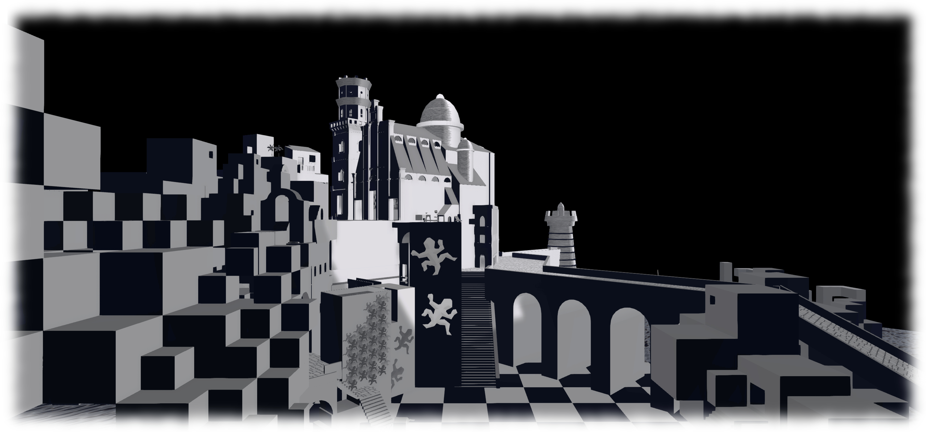 “Recreating a two dimensional work in three dimensions has its challenges, and more so when the work is deliberately faking the third dimension,” Beq notes of the challenges in bringing Escher’s work into the digital realm. But there are also opportunities, as she also notes, “it also gives you freedom to play with the unseen areas. I have tried to make the sim explorable, with tunnels and caves that lead you through the rocks, past stalactites and back round into the central square. I am sure that there are places I have not intended to make still waiting to be found.”