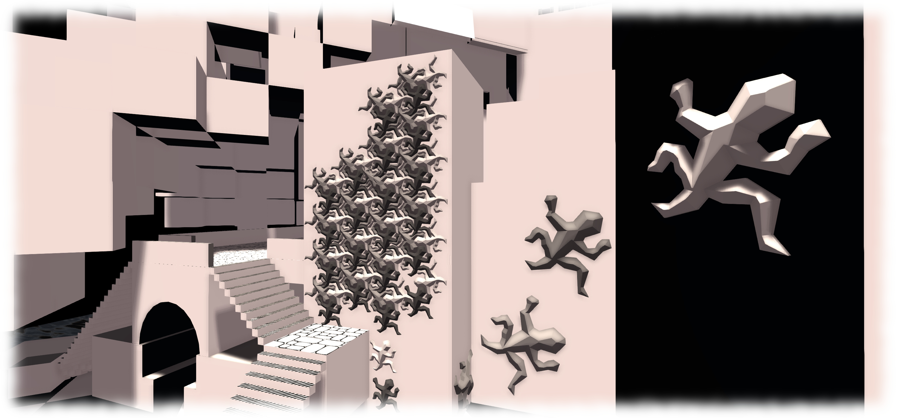 The most prominent influence from Escher in the piece, as Beq notes, is that of the artist’s 1939 wood print Metamorphosis II. However, elements of both Metamorphosis I and Metamorphosis II can also be found. Also evident, again reflecting Escher’s work and the influences in his life, are elements of the little Italian town of Atrani – most notably the church and surrounding houses.