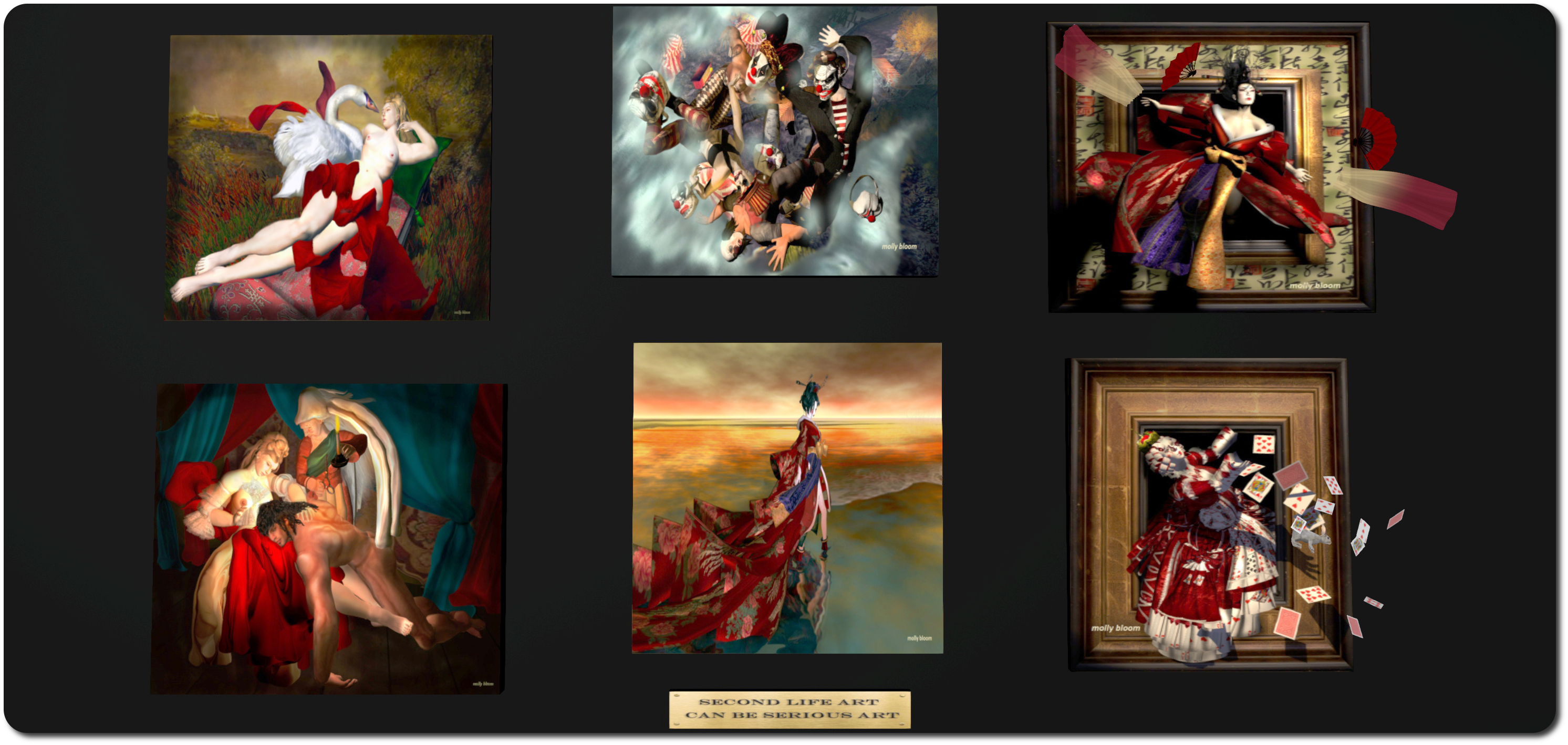 Entitled Artist Evolution, the exhibit offers an examination of Molly’s SL art as it has evolved together with her mastery of the many composite elements that go into her work. As such it is a fascinating piece, not only for those who – like me – enjoy Molly’s work immensely, but for anyone interested in how an artist develops their eye, style, skill and artistry.