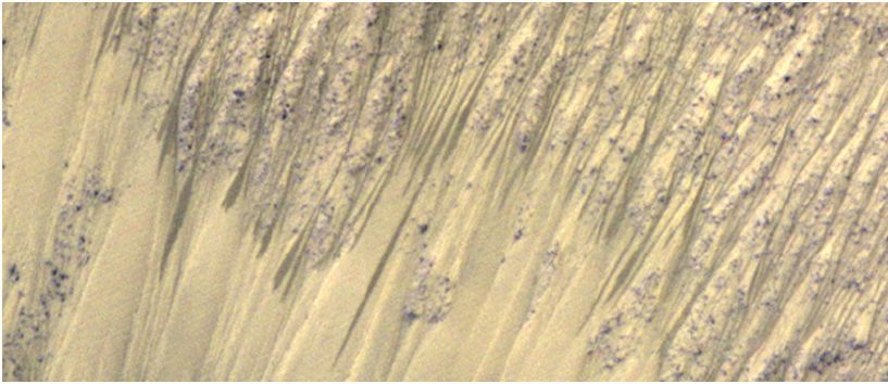 The RSL features on Mars are particularly common in equatorial regions, seem to be most noticeable in the spring season, then gradually fade during the year, before being somehow renewed again.