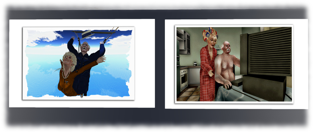 Taking their lead from the original cartoons, Gidgy’s pictures present a whimsical and delightful set of scenes shoot with her partner, Wilberforce Buckshot (WilberforceBuckshot). Some of these, like the originals, have been taken with the couple naked, while all of them express the joys of being in love, be it when greeting your partner as they return from a trip, caring for them whilst they are ill, sharing a daring pastime together, missing them when they are absent – even discovering one of their naughty secrets (the Interwebz have a lot to answer for, above right!).