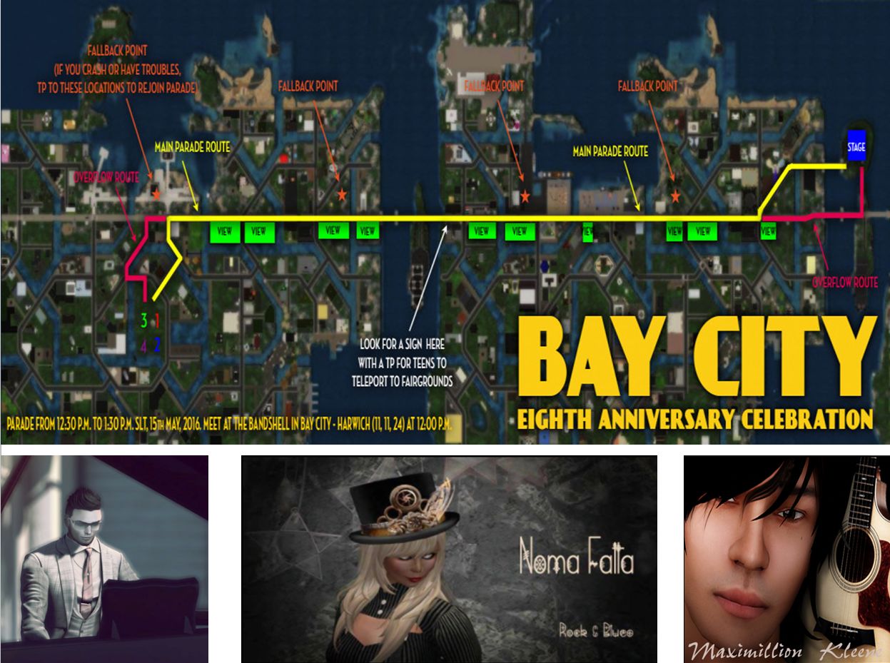 Activities will kick-off at noon SLT with a parade line-up at the bandshell in Bay City – Harwich. At 12:30 SLT, the parade will make its way down Route 66, and proceed to the Bay City Fairgrounds in the North Channel region. GoSpeed Racer of KONA stream will be providing the music throughout the parade, which will be followed by at live concert from 13:30 SLT onwards at the fairgrounds.