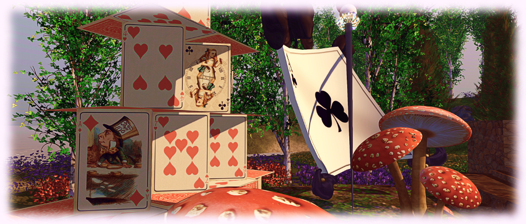 The presentation will begin with “Down the Rabbit Hole” at 13:00 SLT, and will conclude with “Alice’s Evidence” shortly after 16:00 SLT. It will include the voice talents of Corwyn Allen, Hana Hoo, John Morland, Kayden Oconnell, Dubhna Rhiadra, Trolley Trollop, and Caledonia Skytower.