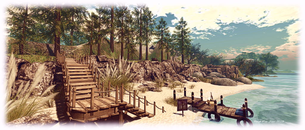 Just over the water from her Snuggles brand stores in Second Life, Teagan Parnas has created a little park open to the public to enjoy. Snuggles Forest, occupying a Homestead region, offers the chance for visitors to roam an undulating landscape and dance, sit, share time on the beaches, explore and – as them name might suggest – snuggle.