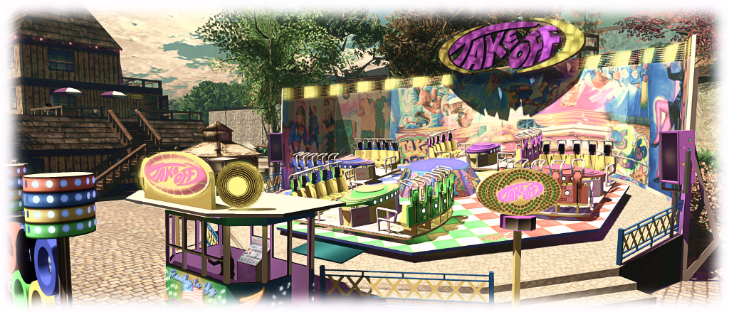 The landing point is located right in the centre of the park, surrounded by several of the larger rides. Some of these, like the tower drop, roller coaster and Ferris Wheel, are precisely the kind of ride you’d expect in any theme park in the physical world. But as this is SL, there are also one or two which blow a raspberry at gravity, opting instead to offer patrons the kind of ride physical world theme park designers can only dream about – such as Free Fall by Obione Klaar and the G-Force Spinner by Mr. Mad (MadLad Clip).