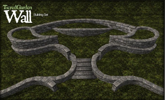 The pieces range between 1 LI (basic steps) through to 4 LI in their default sizes. They are supplied as copy / mod, so resizing is possible – although care is needed, as doing so can significantly increase the other LI on items when enlarged. The wall segments are scripted to provide 4 stone styles: granite, light stone, dark stone, and grey stone, each of which can include a moss effect as well, giving a total of eight different finishes.