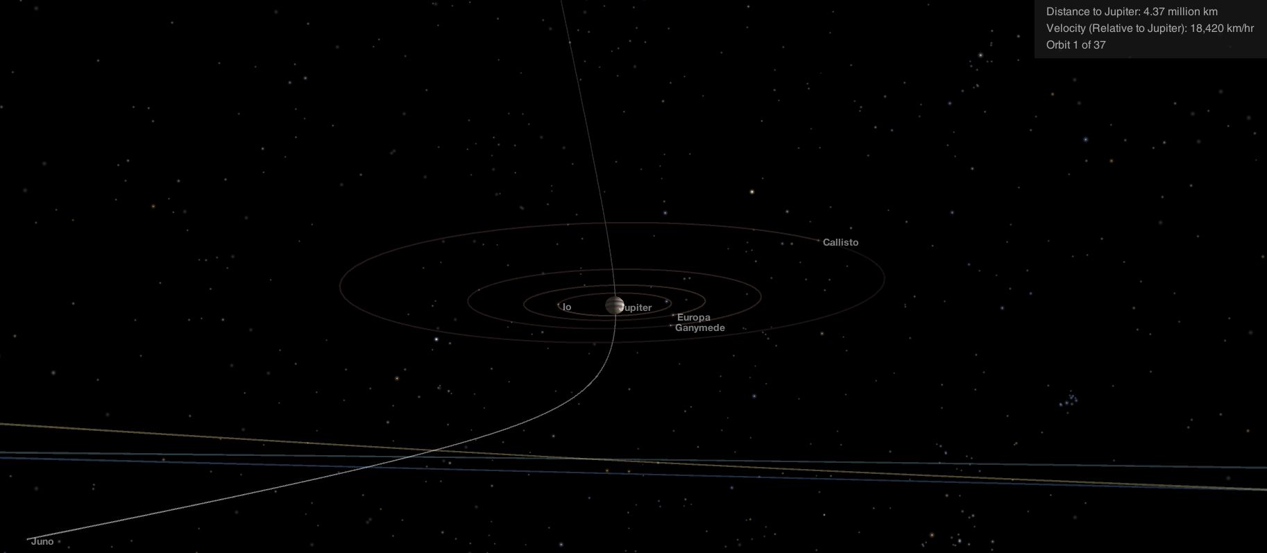 To celebrate Juno’s arrival around Jupiter, NASA released a time-lapse video of the Jovian system as seen by the approaching spacecraft. It begins on June 12th with Juno 16 million km (10 million mi), and ends on June 29th, when JunoCam was shut down and Juno was 4.8 million km (3 million mi) distant.
