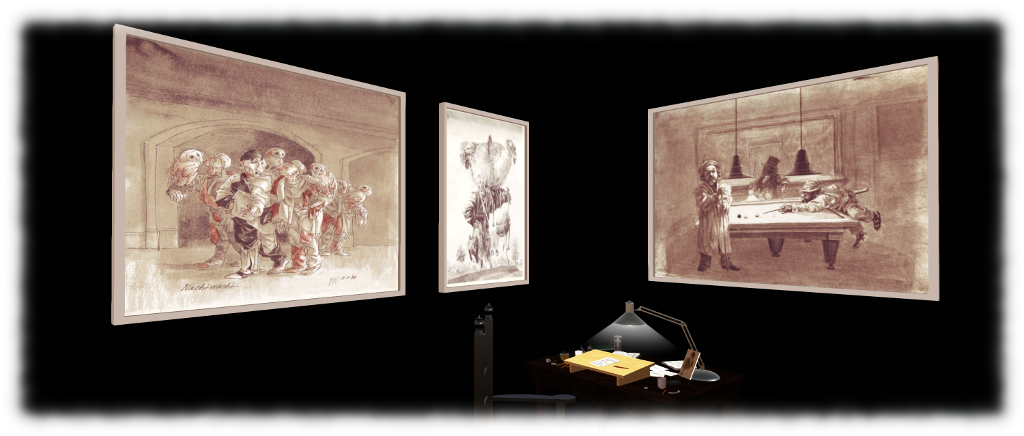 All of this – the rich diversity of styles, the ability to move from keen observer to drawer of the fantastic, and his intimate expressions of love – is displayed throughout Peter Vos in Second Life. It is a most remarkable tribute to a most remarkable artist; one made all the more moving and intimate when one considers it has been curated by his son, known in-world as Karkassus Jigsaw.