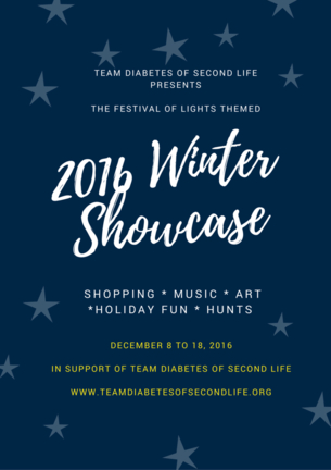 The Team Diabetes of Second Life 2016 Winter Showcase and Art Show opens its doors on Thursday, December 8th, and runs through until Sunday, December 18th. It will include ten days of live performers, DJs, concerts, tribute acts, hunts, ice skating, ice fishing and, of course the Winter Showcase and the Kultivate Winter Art show. All to raise money for the American Diabetes Association (ADA), through Team Diabetes of Second Life, ADA’s official and authorised in-world fund-raising team.