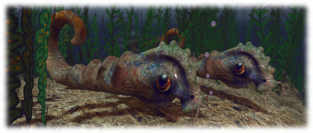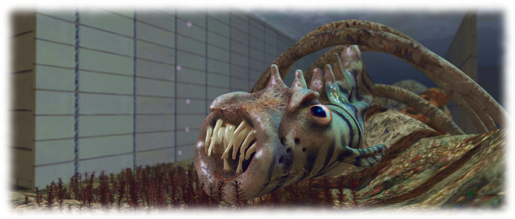 The scale here has to be seen to be appreciated. Everything is huge, with some of it a little threatening. The sabre-toothed fish, for example, may not seem interested in you, bit walk or swim close to one, and you start to wonder if it will suddenly dart forward and try to gobble you. Nor is this feeling of perhaps being a morsel in the food chain restricted to the fish; approach the great sea snail from the right direction, and you’ll feel like it is stretching its toothed maw up towards you in hope of a bite.