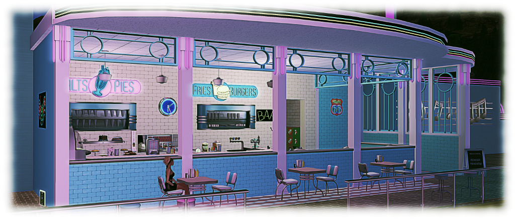 Visitors arrive at a roadside stop on Route 66. The moon hovers low in the sky, and sandstone mesas break-up the horizon. Across the road, resplendent in neon and art deco styling, sits the Calas Skate–O-Rama, searchlights sweeping the darkening skies. This is a poplar place: the asphalt car park is almost full. Once across the road, the deco style doors to the arena beckon – and hide a secret. Step through them, and far from leaving the desert skies behind and you going indoors, you enter an open-air rink, a 50’s style diner to one side, and a live performance stage on the other.