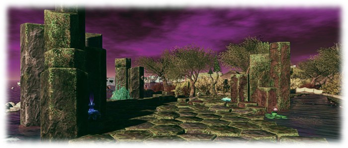 In fact the biggest change is to the Storyteller’s Circle in the south-east corner of the park. The tree circle and the paths have been removed to make way for Cerridwen’s Corner, a store area where Elicio’s creations will be on sale, with all proceeds going to Elicio and his family.